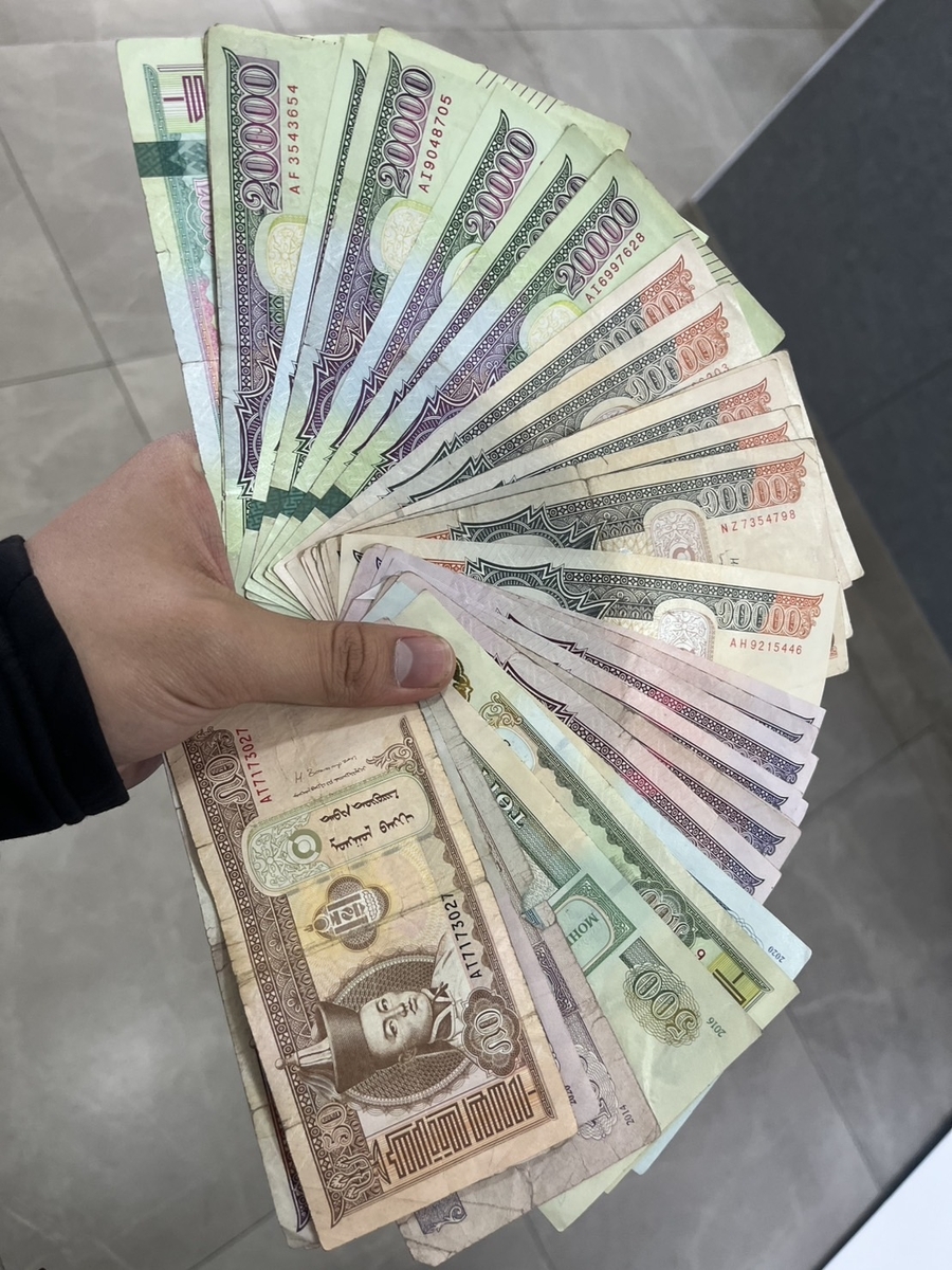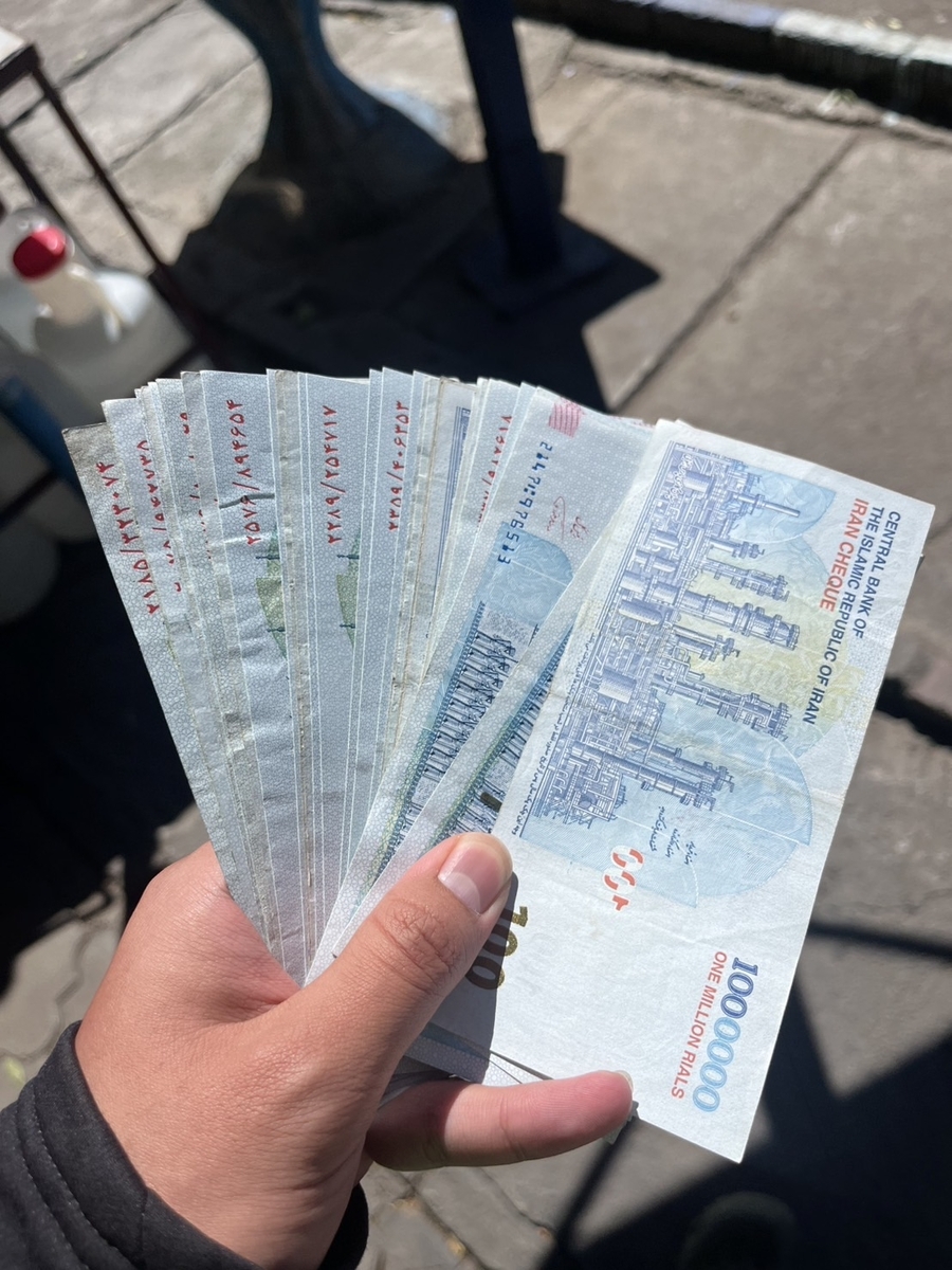 タブリーズの中心街に着く前に両替商に寄りました。Goodレートは2025年9月時点では1,000,000リアル(100,000トマン)で1ドルです。ハイパーインフレですね。桁が大きすぎて騙してくる両替商もいるらしいので気を付けてください。こちらのサイトが参考になります。1,000,000リアルが日本で言う10,000円のようなもの(1番高い紙幣)で、100ドル替えると100枚ほど渡されます。